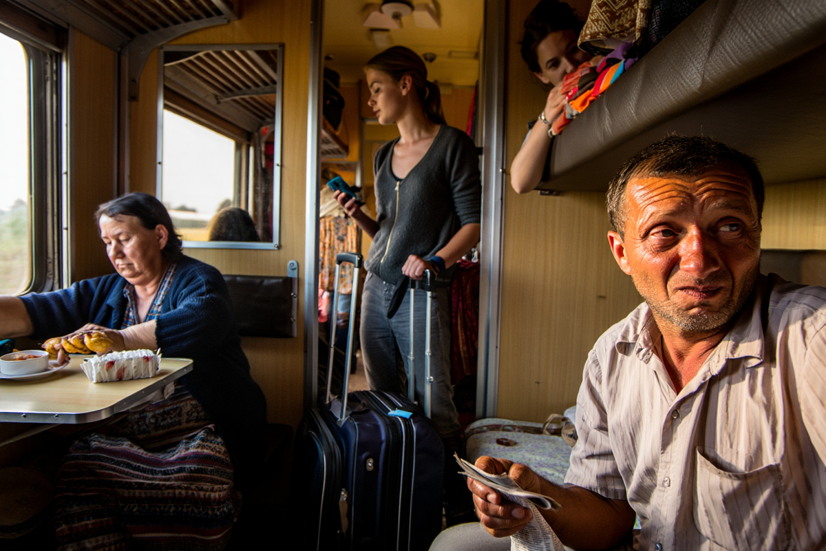 Поезд тронулся, и наше купе погрузилось в привычный для дальних поездок быт. Полная дама, представившаяся Еленой Петровной, достала домашние котлеты и предложила всем угоститься. Мужчина (его звали Сергей) разлил чай из термоса. Девушка с телефоном (Аня) поделилась печеньем.