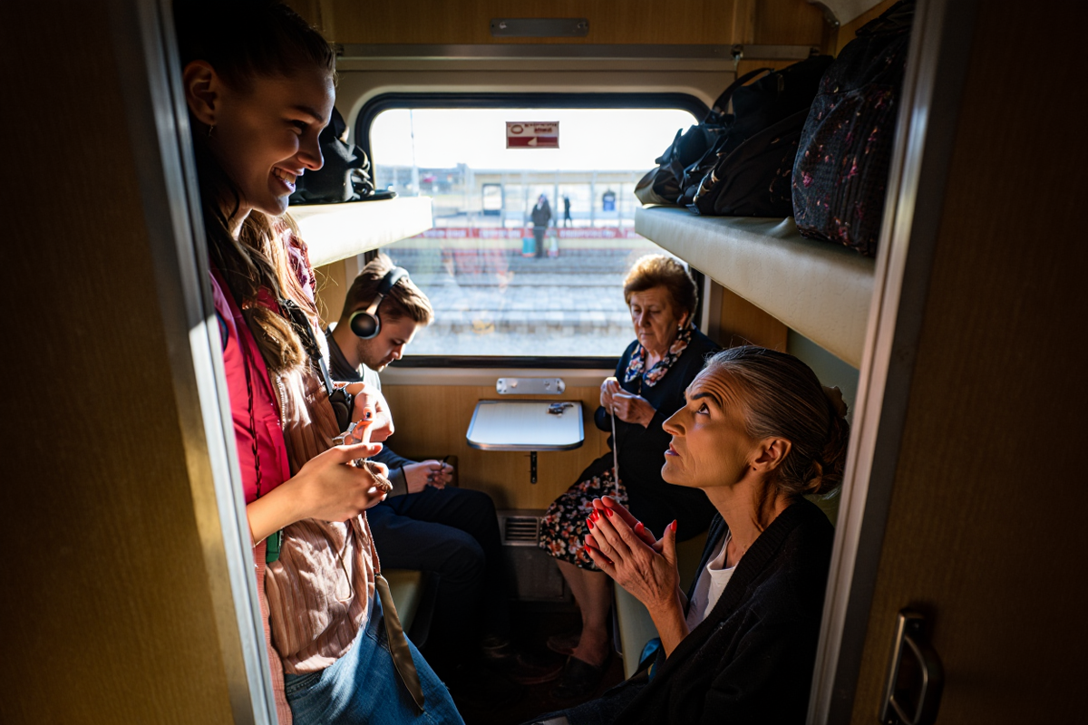В противоположных концах купе две женщины одновременно пытались устроиться рядом со своими маленькими армиями: у Ольги была тонкая, чуть дрожащая коляска, в которой сопел новорожденный, у Марины — два пластмассовых рюкзака и ребенки лет трех и шести, которые уже на этапе посадки затеяли возню, будто это не поезд, а детская площадка.