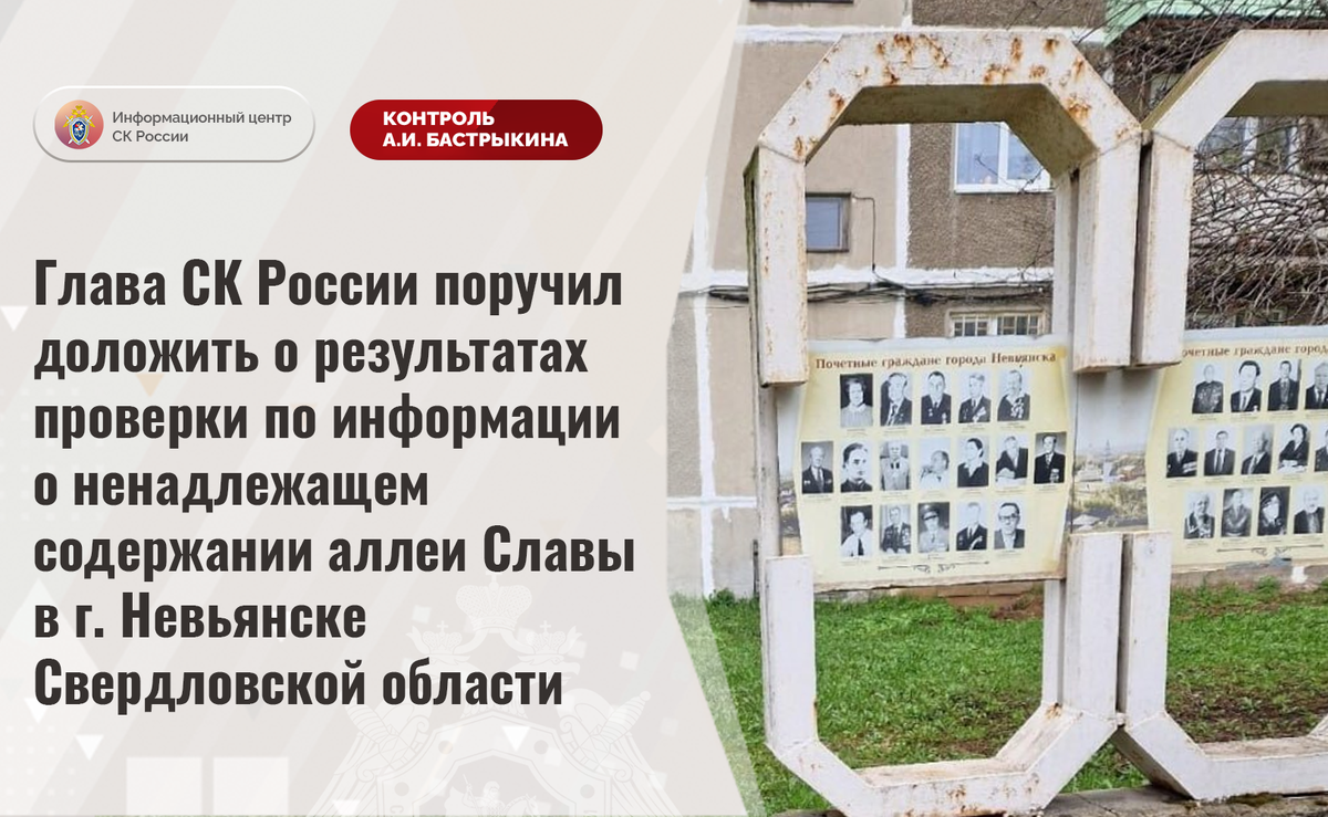 Глава СК России поручил доложить о результатах проверки по информации о ненадлежащем содержании аллеи Славы в г. Невьянске