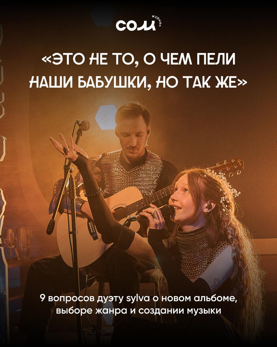 «Это не то, о чем пели наши бабушки, но так же»: 9 вопросов дуэту sylva о новом альбоме, выборе жанра и создании музыки 3 мая дарк-фолк дуэт sylva представил свой первый альбом «О сердце и пламени». Музыка ребят — это прогулка в тумане по ночному лесу в поисках себя. Каждая их песня — темная сказка о боли и избавлении от нее. Мы узнали у Андрея и Сильвы, как они начали работать вместе, что вкладывают в свое творчество и что такое инди-фолк. Об этом и кое-чем другом читаем в карточках! ⬆️ #сом_9вопросов