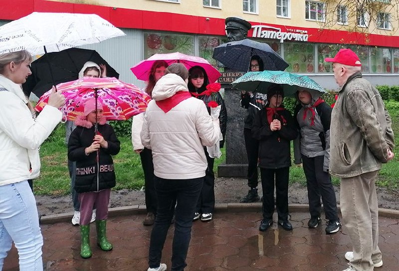 80-ЛЕТИЕ ПОБЕДЫ: ВИЧУГА Накануне Дня Победы, 8 мая, член Ивановского обкома КПРФ, историк-краевед М.М. Сметанин провёл для вичугских пионеров и комсомольцев урок под открытым небом на Аллее Славы в центре города, где, как известно, установлены бюсты наиболее прославленным землякам-вичужанам: Маршалу Советского Союза, Дважды Герою Советского Союза А.М. Василевскому, Маршалу авиации С.Ф. Жаворонкову и генерал-полковнику Л.М. Сандалову. Михаил Мефодьевич подробно рассказал ребятам биографию каждого из них, начиная с указания улиц города, где родились наши легендарные земляки, до основных подвигов и достижений, совершенных ими в годы войны. Затем ребята возложили к бюстам цветы и сфотографировались на память. А уже 9 Мая, коммунисты Вичугского городского отделения КПРФ провели работу с партийной печатью в центре города, раздавая вичужанам поздравительные открытки, красные ленточки и спецвыпуск газеты «Слово Правды». Завершилось мероприятие возложением цветов на Аллее Славы и в микрора