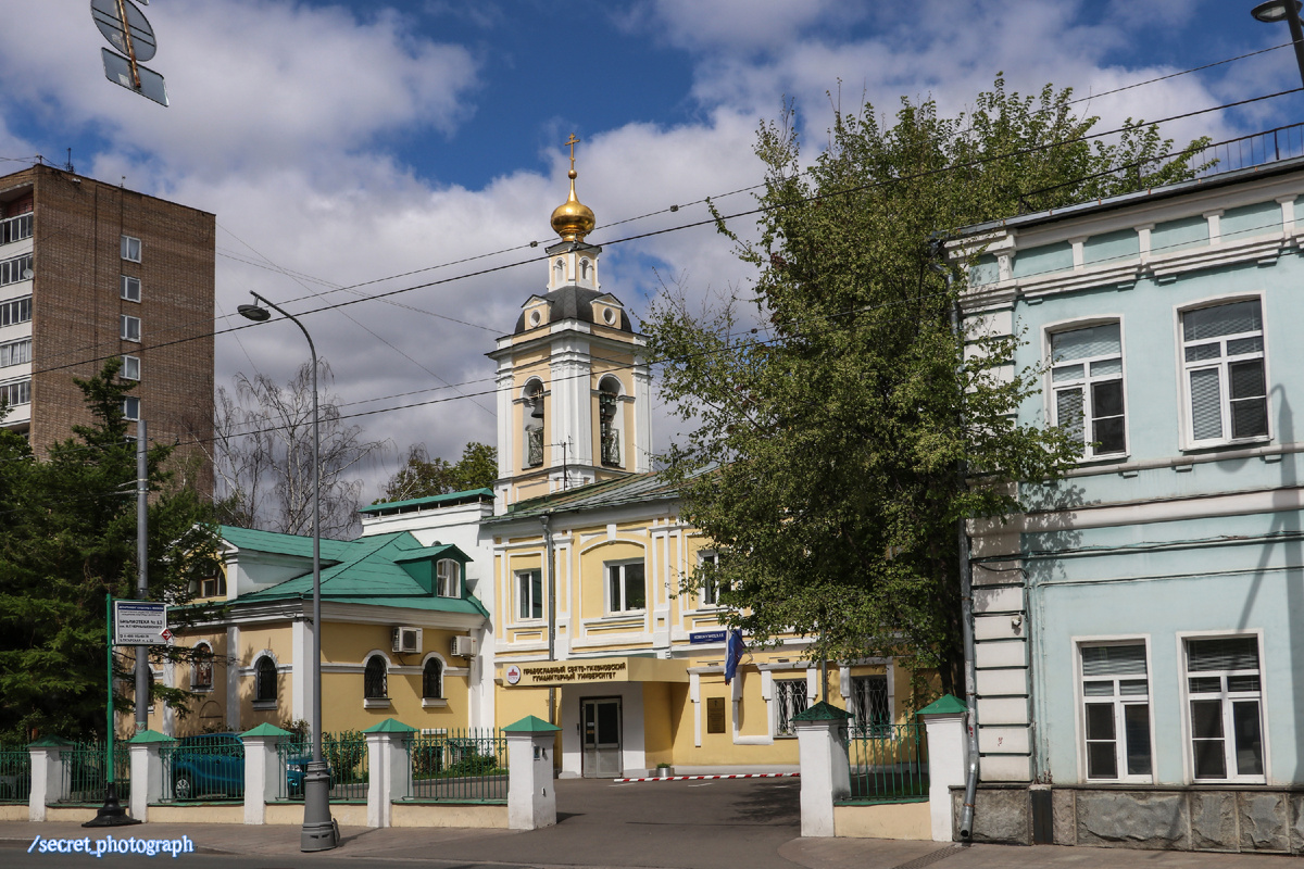 Мимо него можно было бы пробежать и не заметить, храм стоит не на самой Новокузнецкой улице, а укрылся в тихом и спокойном Вишняковском переулке. Однако взгляд каждого, кто проходит здесь, обязательно задержится на светло-желтом здании с вывеской «Свято-Тихоновский Гуманитарный Университет» над крыльцом.