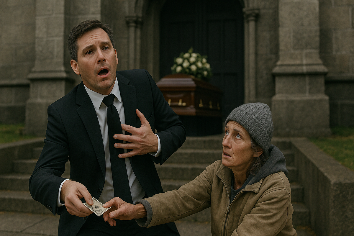 Та самая попрошайка пришла на похороны. Стояла в стороне, в том же платке. Люди оборачивались, не понимая, кто она. Она же шептала: