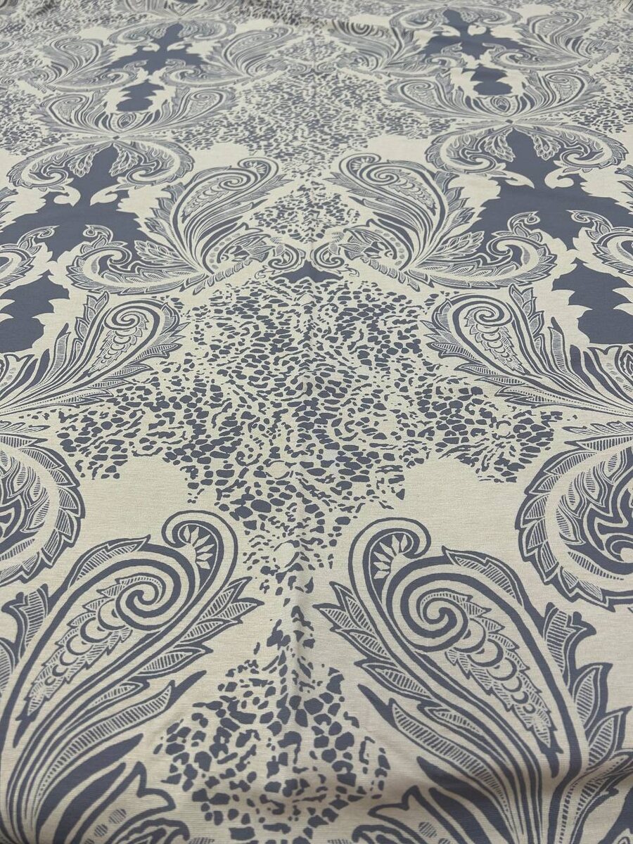 Джерси вискозное, на молочном фоне серый принт Пейсли