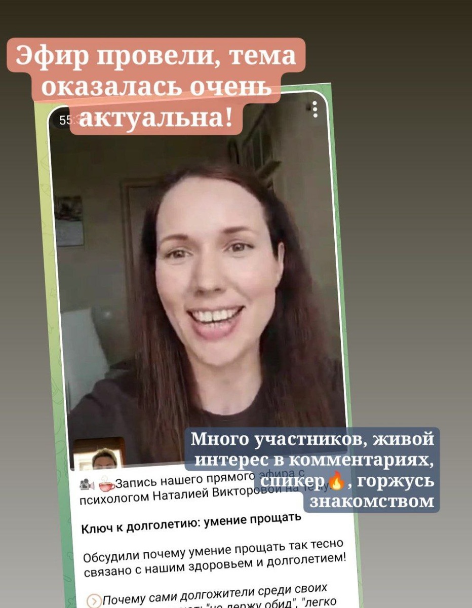 На этой неделе я провела прямой эфир с крутым психологом на тему: Ключ к долголетию: умение прощать.