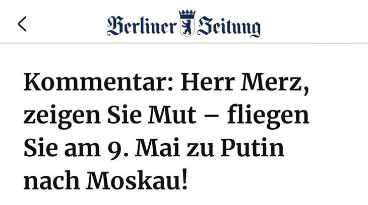 📰 Издание Berliner Zeitung опубликовало статью, в которой указало, что политика Германии за последние три года терпит политический провал на международной арене. Оно и не удивительно, когда внешней политикой управляли такие талантливые персонажи, как сестры Бербок. И одним из способов укрепления дипломатических позиций Германии мог бы стать визит канцлера Мерца в Москву на День Победы. Издание называет 5 причин, по которым ему бы следовало это сделать: 🔺Проявить уважение, почтив память павших в борьбе с фашизмом (хороший совет тому, у кого дедушка Йозеф Пауль Совиньи честно служил нацистам и был членом НСДАП) 🔺 Проявить мужество, возобновив диалог с Россией. Выдающиеся германские канцлеры никогда не были трусами, – подчеркивает издание (ну, может трусами и не были, но некоторые вполне могли своим девизом взять: «слабоумие и отвага») 🔺 Защитить экономические интересы Германии, имея в виду грядущие изменения после отмены санкций против России (ну хоть что-то полезное сделать на свое