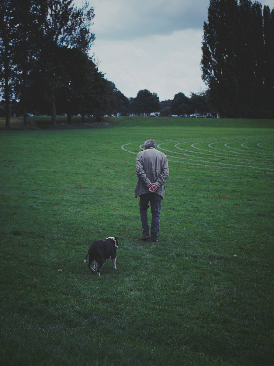 Собака стала для него очень дорога. Он обожает её всем сердцем. Обращается нежным и ласковым тоном. Всегда похвалит за правильное действие. Или просто погладит по голове.