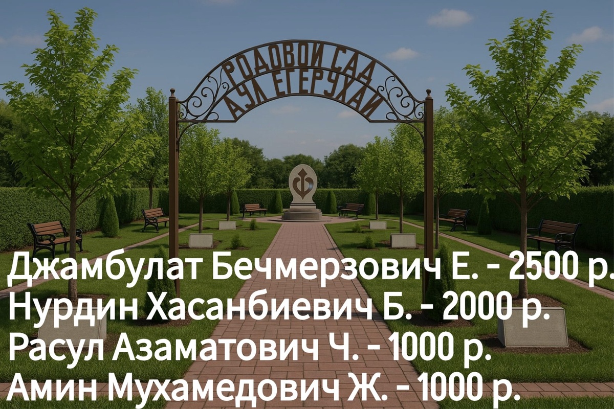 Поступления денежных средств от жителей и выходцев аула Егерухай на реализацию проекта Родового сада. Благодарим всех за оказанную помощь и поддержку! Выражаем надежду, что и другие жители нашего аула также проявят активную гражданскую позицию. Напоминаем, денежные средства можно перечислить по номеру карты Сбербанка: 2202 2002 3860 9869 (Амин Нурбиевич Д.) Также можно осуществить перевод по номеру телефона: 8-918-220-58-95 На имя Амина Нурбиевича Д. В сообщении укажите: Благоустройство Родового сада.