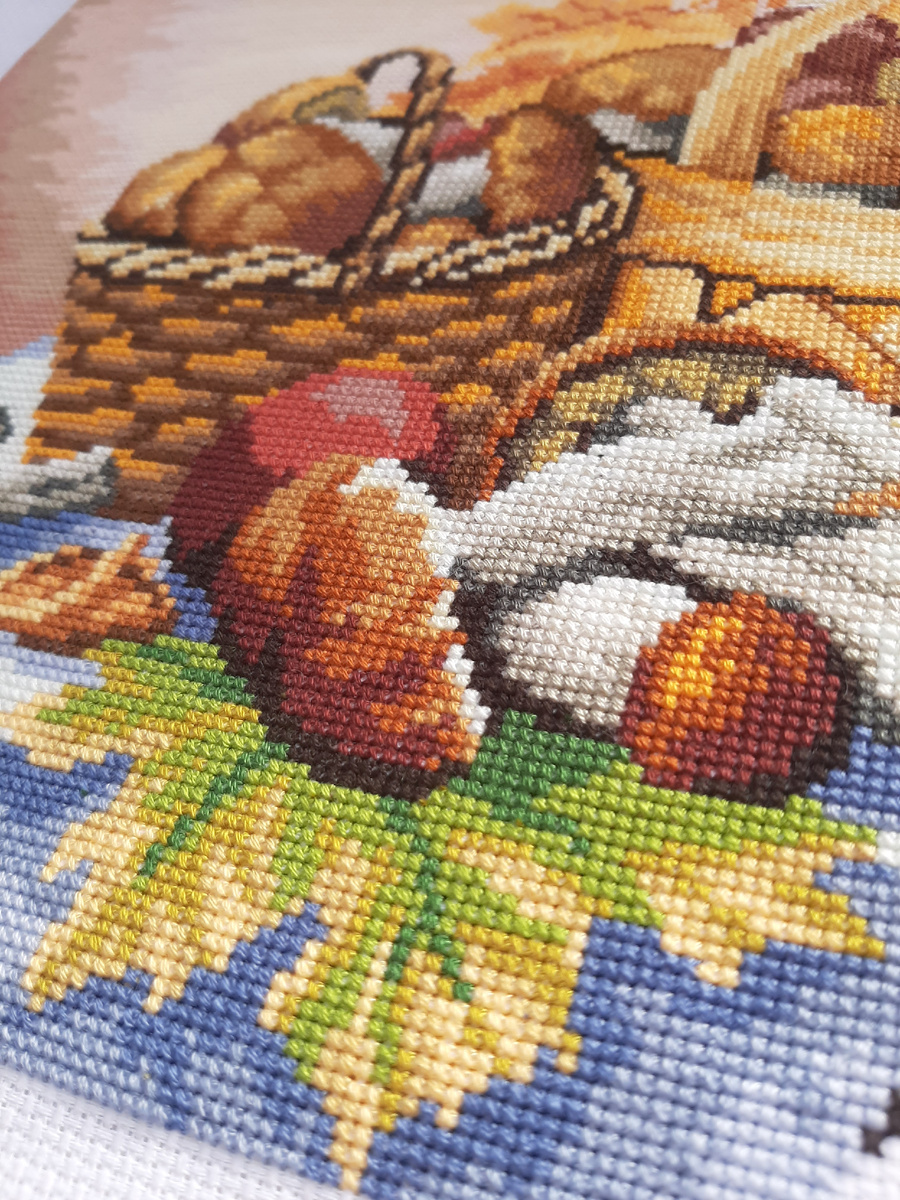 Вышито 1 373 крестика и вуаля ... листочек и скатерть готовы .