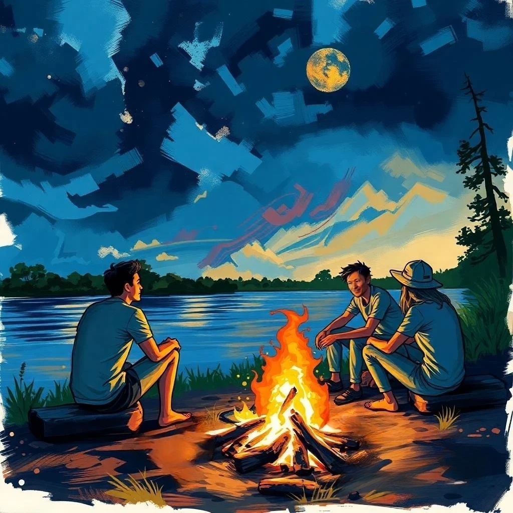 Жанр: рок. [Куплет 1] Друзья на пляже вновь сидят, Поленья весело трещат. Вокруг костра все собрались, От важных дел оторвались. [Куплет 2] Усталость дня ты враз снимаешь, И души наши согреваешь. Ты разгоняешь темноту, Создашь уют и теплоту. [Припев] Ночной костёр мрак озари, Теплом согрей нас до зари. С тобой уютно нам сидеть, И песни под гитару петь. [Куплет 3] Искры летят, как звёзды ввысь, А песни ночью всё лились. Смех и улыбки до утра, Вокруг костра, вокруг костра. [Куплет 4] Когда светать уж начинает, Костёр с тоской мы оставляем. Но знаем – скоро вновь придём, И пламя яркое зажжём. [Припев] Ночной костёр мрак озари, Теплом согрей нас до зари. С тобой уютно нам сидеть, И песни под гитару петь. Официальный сайт проекта Floodplain Gold: Сообщество проекта ВКонтакте: Вся дискография и информация о проекте: