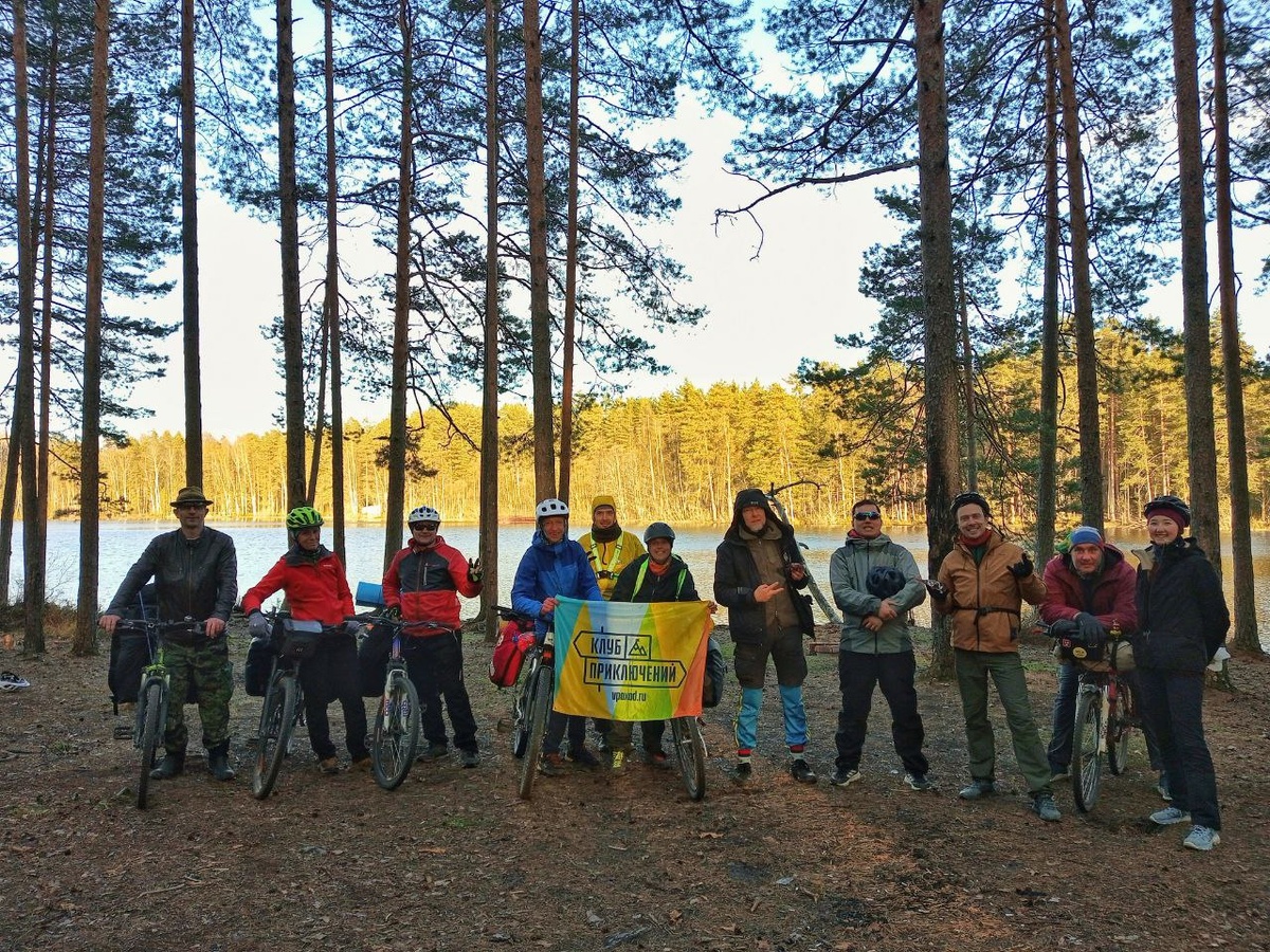 И поиски места ночлега, потому что отказывались от идеи ночевать на ветренном берегу реки Волхов и прятались в лесистую часть.