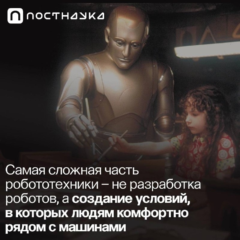Культура формирует представления о технологиях, преувеличивая связанные с ними угрозы. При этом она совершенно не способствует восприятию робототехники как серьезной науки. Разработчики сталкиваются с недоверием: человеку трудно поручать машинам задачи, которые он выполнял вручную. Завышенные ожидания и скепсис мешают людям увидеть реальную пользу роботов. Поэтому разработчикам и тем, кто продает роботов, важно сформулировать пользовательский сценарий, где робот и человек сотрудничают, и человеку при этом комфортно. Гид о науке, информационных технологиях и робототехнике: https://postnauka.org/courses/154507