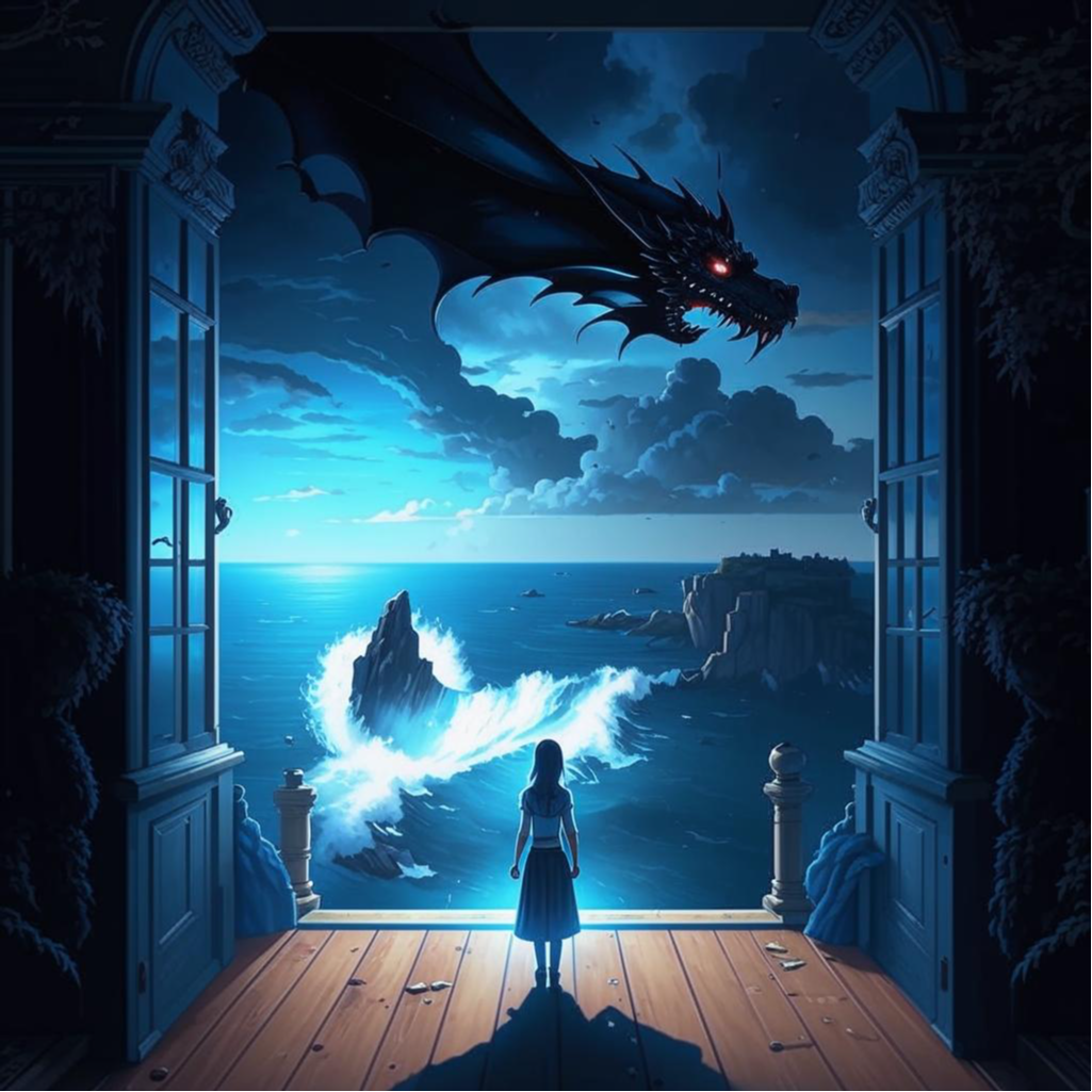 Страх, тревоги сменились волнением от предвкушения прекрасного. Ветер не просто меня поддерживал, он наполнял силой. Это сравнимо с глотком воды на привале после долгого подъема в гору. Когда сила била из меня через край, когда почувствовала, что могу не просто следовать за дуновением ветра, а покорить его и заставить нести меня в нужном направлении - сверкнула молния. Яркий свет озарил небо. Молния разделила небо на две части, темно-синие тучи расступились и за ними появился черный дракон. Он замер на долю секунды и ринулся ко мне. Страх, непонимание, чувство утраты контроля над телом. Ветром пронзил меня. Я проснулась.