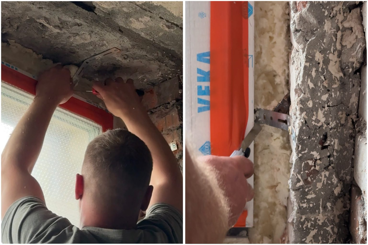 Разберем и покажем процесс монтажа на примере одного из сложных объектов Ситуация была не из простых – кирпичные стены дома в старом фонде, сильно неровное основание. Разное расстояние от стен до проемов по боковым сторонам. Выступы ближе к самим проёмам. По предварительным подсчетам, на такие откосы понадобилось бы порядка 20 мешков штукатурки. По итогу нашими партнерами было принято решение использовать панели RPG Basic толщиной 50 мм. 2. Делаем замеры по всему периметру для расчета ширины откосов и подготавливаем панели RPG Basic толщиной 50 мм (для грамотной теплоизоляции используется от 20мм) 3. Создаем некий короб из панелей, для того чтобы нарастить толщину откоса 4. Наносим полиуретановый клей Руспанель на откосы 5. Наносим плиточный клей на панель лепешками – это поможет нам нарастить откосы и избежать применения каркаса 6. Для создания теневого профиля (такой вариант устанавливается по желанию), крепим профильный уголок 7. Фиксируем конструкцию скотчем на время высыхания кл