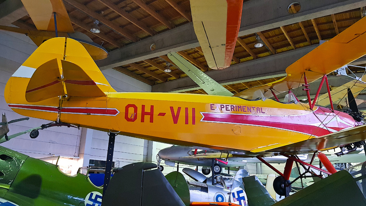 В ангаре №1 представлены летательные аппараты разных этапов развития авиации, но все же больше первой половины ХХ века. Весьма интересным было узнать, что большинство самолетов были изготовлены на территории Финляндии. Здесь весьма развито лицензионное производство до сих пор. Сразу после входа вас встречает учебно-тренировочный Klemm L25. Деревянный свободнонесущий тандем был выпущен в количестве 600 экземпляров в 1928-36 г.г. имеет весьма чистую аэродинамику и простые аэродинамические формы. Дракен и Квики : 12 шведских истребителей были собраны на заводах Valmet для финских ВВС. ВВС Финляндии приобрели 30 Caudron C.60 во Франции в 1923-1924