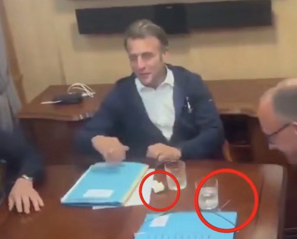Во время поездки в Киев президент Франции и канцлер ФРГ спрятали странные предметы при появлении журналистов — это вызвало волну обсуждений и шуток, хотя французские СМИ утверждают, что все объяснимо.