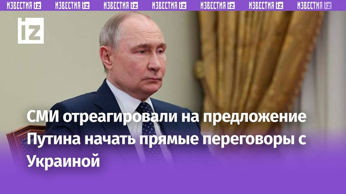 Президент России Владимир Путин предложил Украине без предварительных условий возобновить прямые переговоры, которые были прерваны три года назад. Встреча должна состояться 15 мая в Стамбуле. Что пишут зарубежные СМИ об этом предложении — в дайджесте «Известий». Президент России Владимир Путин предложил провести прямые переговоры с Украиной, направленные на прекращение конфликта. Эту инициативу поприветствовал президент Украины Владимир Зеленский. Он заявил, что Киев готов к переговорам, но Москва должна согласиться на прекращение огня. Reuters Поскольку российские войска продвигались вперед, глава Кремля до сих пор предложил мало уступок, но инициировал переговоры с Украиной в Стамбуле, которые, по его словам, будут проведены без предварительных условий и направлены на прочный мир. Президент США Дональд Трамп, который говорил, что хочет, чтобы его запомнили как миротворца, и неоднократно обещал положить конец конфликту, сказал, что для России и Украины настает великий день, если «кров