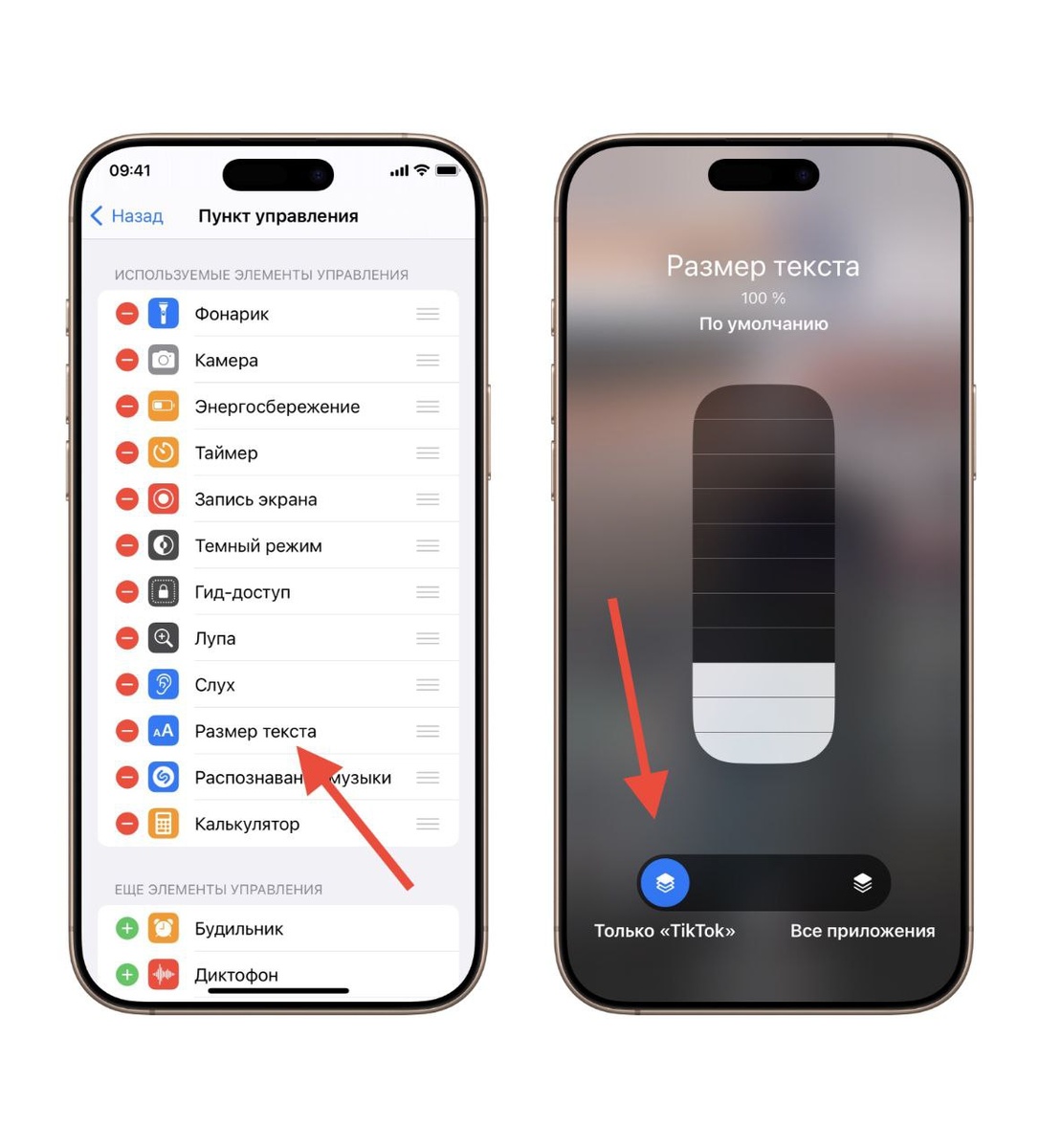 Индивидуальная настройка размера текста для приложений Менять размер шрифта можно отдельно для каждого приложения на iPhone. Обычное изменение размера влияет на всю систему сразу, что подходит не всем: где-то текст удобен, а где-то — либо крошечный, либо гигантский. Но есть способ, чтобы каждое приложение настраивалось отдельно. Не устраивает стандартный размер? Меняйте его не трогая систему Как это сделать: Настройки —> Пункт управления —> добавьте кнопку Размер текста. После этого откройте нужное приложение, вызовите шторку и настройте шрифт именно для него.
