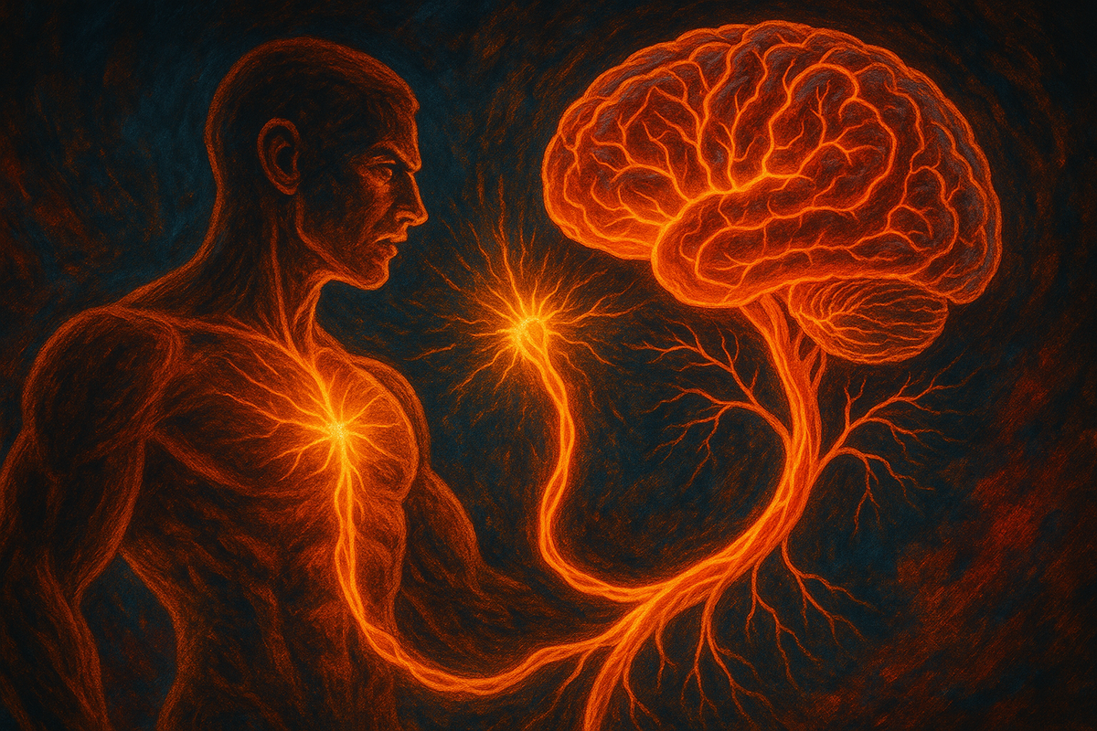 Давай рассмотрим, что происходит с блуждающим нервом в моменты, когда ты активируешь свою энергию и силу — через физическую активность, медитацию, дыхательные практики, или когда ты просто встаёшь, чтобы побороть лень. Пример: Перевод для блуждающего нерва: “Всё в порядке. Ты в активности, но это не угроза. Восстановление происходит параллельно.”