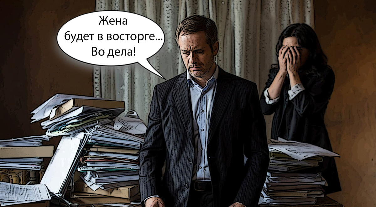 Жена подозревает, что дела идут хуже – он ведь из бизнеса денег навыдергивал, да и бизнес завязан на его личной харизме/умениях, а товарищ из-за нерваков толком не работает.