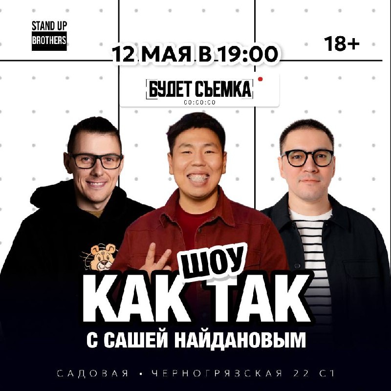 ⚡️Афиша клуба на понедельник⚡️ Снимаем сразу два выпуска нашего шоу «Как так?». Ведущие Денис Антипов и Умид Хайитов исследуют, как юмор помогает нам справляться с трудностями ❤️🩹 🎬19:00 | В гостях Саша Найданов / финалист Камеди Баттл ТНТ и Высшей лиги КВН Билеты 🎫 🎬21:00 | В гостях Сергей Жерихин / писатель, стендап-комик и продюсер Билеты 🎟️ 📍Садовая-Черногрязская 22с1