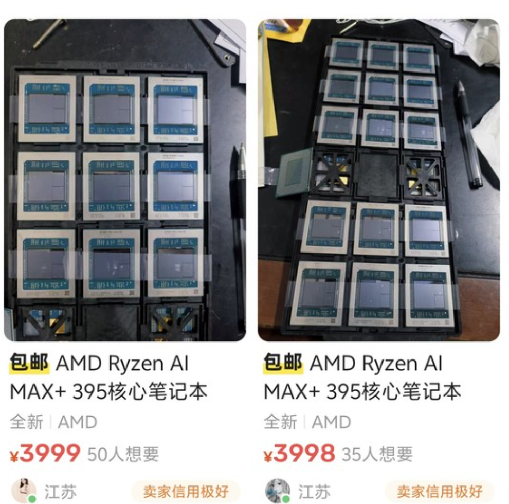 "Голые" чипы AMD Ryzen AI MAX+ Strix Halo появились на вторичном китайском рынке
