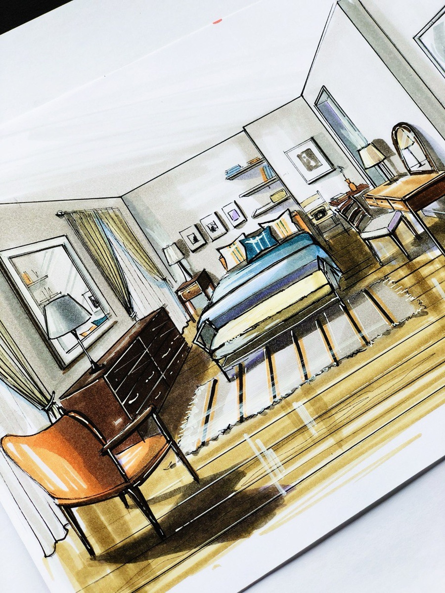 Это мои эскизы из маркерного курса с этой спальней ❤️