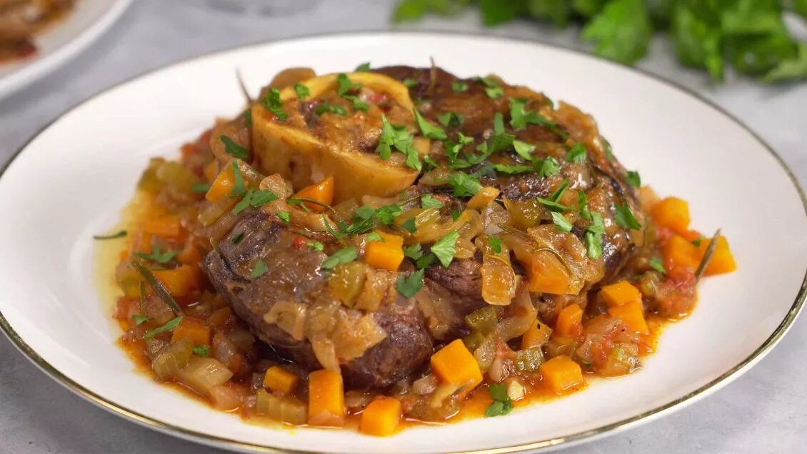 Знаменитое итальянское блюдо ОССОБУКО. Туристы из разных стран, приезжая в Италию, помимо пиццы и пасты обязательно заказывают оссобуко. Его готовят из телячьей или говяжьей голяшки с мозговой костью или полой костью с костным мозгом. Дословно оссобуко в переводе с итальянского - кость с дыркой. Это идеальное блюдо для семейного обеда, ужина и, конечно, на праздничный стол. Время приготовления: 2 часа 20 минут Количество порций: 4 Калорийность: 168 kCal ___ Если статья понравилась — поставьте лайк 👍