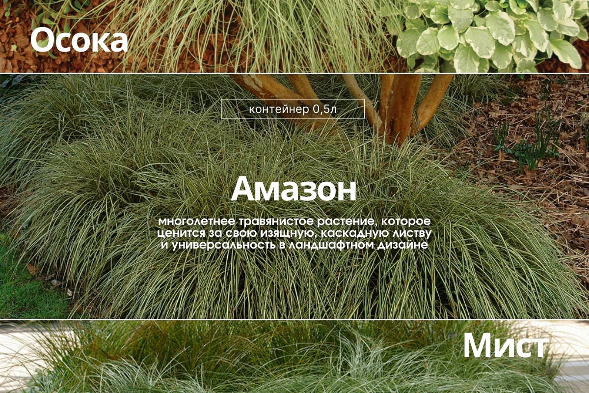 Листья: узкие, длинные, тонкие листья серебристо-зеленого цвета, которые создают впечатление легкости и воздушности. Особенно красивы под дуновением самого лёгкого ветерка. Из-за тонкости листья изгибаются, что придает растению каскадный вид. Будьте осторожны, листья осоки к тому же жёсткие и о них легко порезаться. Форма роста: кустистый комковатый куст, достигающий высоты 30-40 см и диаметра около 45 см. Образует плотные, округлые куртины. Цветение: не является основным декоративным элементом этого растения. Цветки невзрачные, мелкие, собраны в колосовидные соцветия, которые появляются в июне. Зимостойкость: -29°C отлично смотрится в контейнерах и горшках, добавляя текстуру и движение в композиции. Она прекрасно уживается в миксбордерах, рокариях, альпинариях, у воды, где она помогает стабилизировать почву и предотвращать эрозию. 🛒 ОФОРМИТЬ ЗАКАЗ: dolinaroz.ru и 📞 8 918 1 715 715
