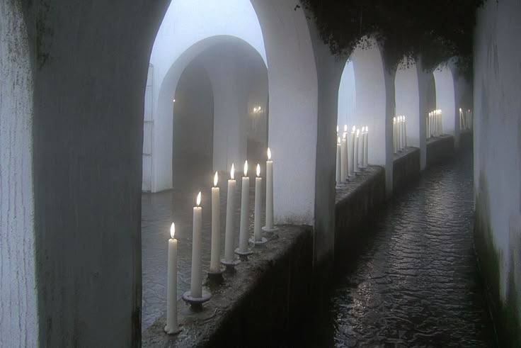 На ощупь, в зазеркалье, мы с тобой, мой вечный заточенный друг и спутник, ступали украдкой вдоль чистейшего искусственного ручья. Вода, коснувшаяся моего хрусталика, отражала поверхность бездонного серо-холодного неба. Звуки строго струящегося источника остались единственным нашим диалогом. Блики играли дымкой на поверхности смело текучей куда-то прямиком от нас воды. Утренний холод ласкал нашу бледную и немую плоть. Мы шли за течением. Твоя худоба вторила мою, твоя голубая душа вторила мою, мне отчаянно хочется быть рядом с тобой, и я чувствую, как опасно. Белая известка стен похожа на снег, это новые районы давно забытых древних улиц, все вымощено так, будто мы попали на узкие улочки городов прошлых тысячелетий. Я пристально слежу за прозрачной водой, ненастоящий ручей наполнен, его глубокие стены можно рассмотреть досконально, они такие же белые, как морозная известка на сахарных лабиринтных домиках. Вода в этом городе кристально