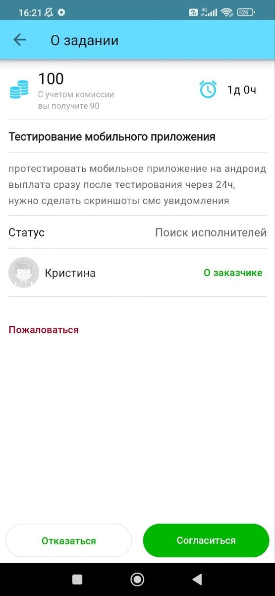 Меня зовут Олеся, мне 36 лет. Сейчас в декрете. На Воркзилле в роли исполнителя я уже 5 месяцев, всё было прекрасно до одного момента. Здесь я и нашла свою «удачу». Увидела задание, что за определенную сумму нужно было на Андроиде в течение суток тестировать приложение «Профи Трекер».