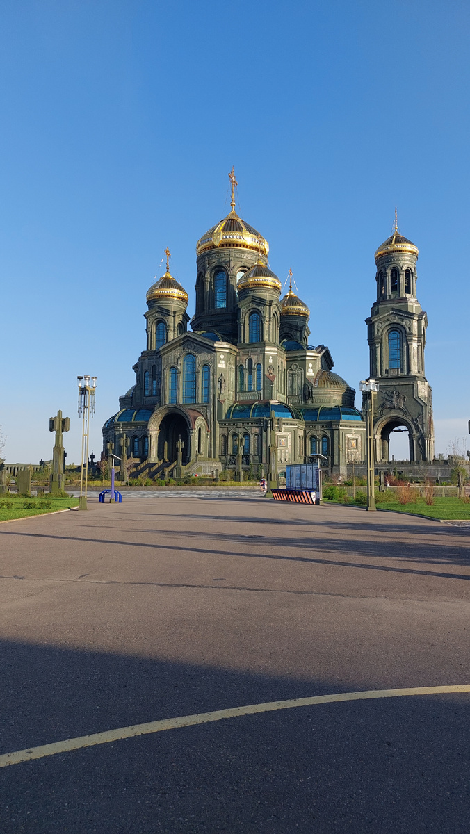Храм расположен на территории парка «Патриот» в Одинцовском районе Московской области. Осенью 2018 года начали его строительство, а завершилось 9 мая 2020 года, в день 75-летней годовщины Великой Победы. Храм имеет много символики. В здании скрыты важные цифры в истории Великой Отечественной войны: Внешний вид храма необычный для православных храмов России, так как построен из стекла и металла. Его стены возведены из железобетонных конструкций, облицованных панелями, покрытыми медью. Из-за чего здание кажется черным, что несвойственно храмам в России. Храм состоит из двух этажей. 1 этаж - это нижний (малый) храм. Он посвящен святому Равноапостольному Великому князю Владимиру, родившегося в 960 году, в честь которого также названа высота храма (96 метров). В центре установлена украшенная мозаичными крестами купель, состоящая из трех резервуаров с лестницами и подсветкой. Здесь же размещен крестильный храм – баптистерия. Интерьеры нижнего храма и баптистерия совершенно уникальны и не и
