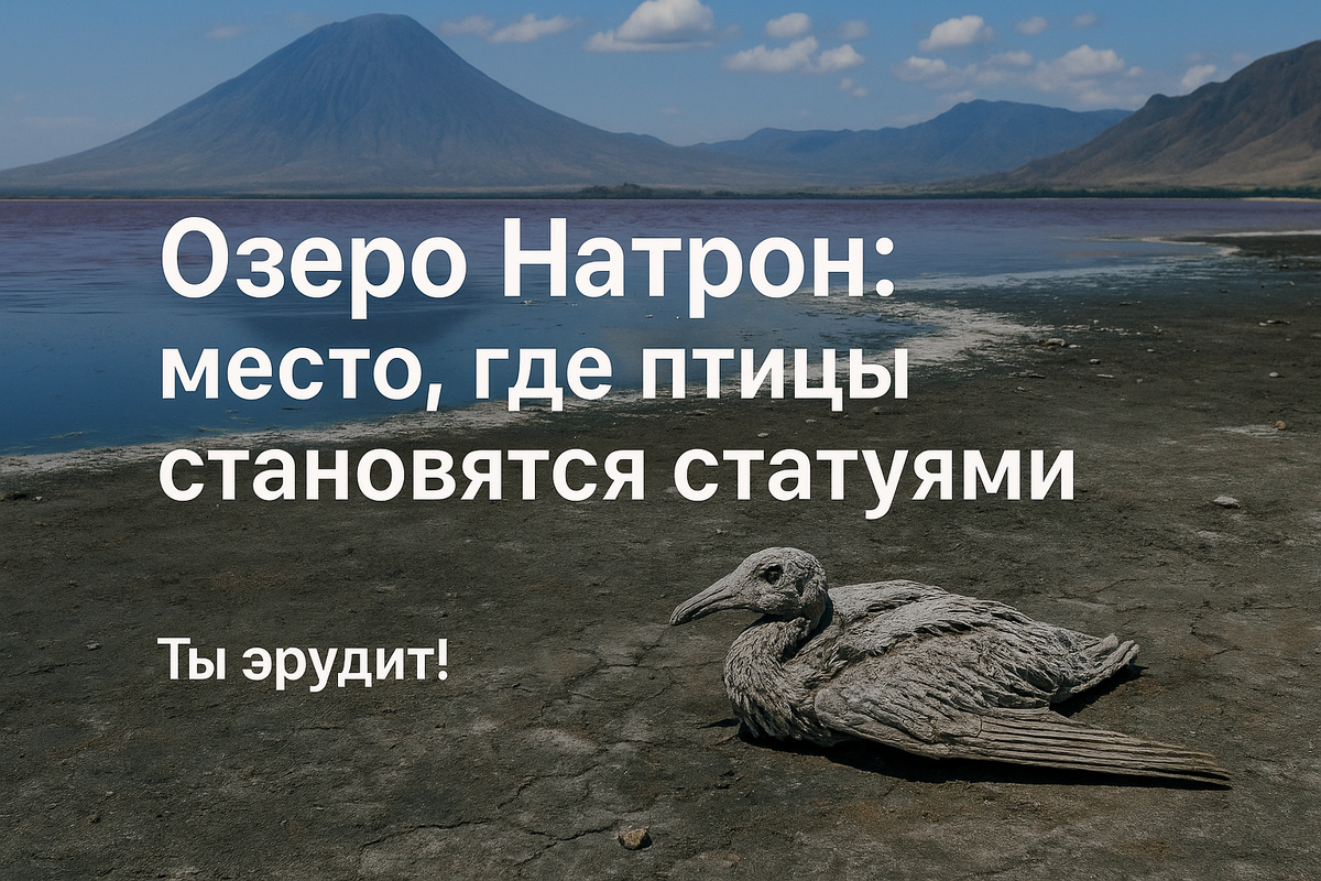 На севере Танзании, у подножия вулкана Ол Дойо Ленгаи, раскинулось одно из самых загадочных озёр планеты — Натрон. Это не просто водоём, а настоящий природный феномен, где, как кажется, сама смерть ходит по берегам с кистью в руках, превращая живое в камень. Озеро Натрон — щелочной водоём с экстремально высокой температурой (до +60 °C) и уровнем pH, достигающим 10,5. Такая вода едка, как моющее средство. В ней легко растворяются ткани живых организмов, а оставшиеся останки покрываются минералами, превращаясь в нечто, напоминающее скульптуры. Главная причина этих свойств — высокая концентрация натроновой соли (смесь карбонатов натрия и бикарбонатов), от которой и произошло название озера. Это вещество обладает мощными консервирующими свойствами. Именно так природа здесь мимолётно создаёт вечность. В начале 2010-х фотограф Ник Брандт опубликовал серию кадров, где показаны окаменевшие птицы, будто бы в позе жизни — сидящие, стоящие, с расправленными крыльями. Эти изображения взбудоражили
