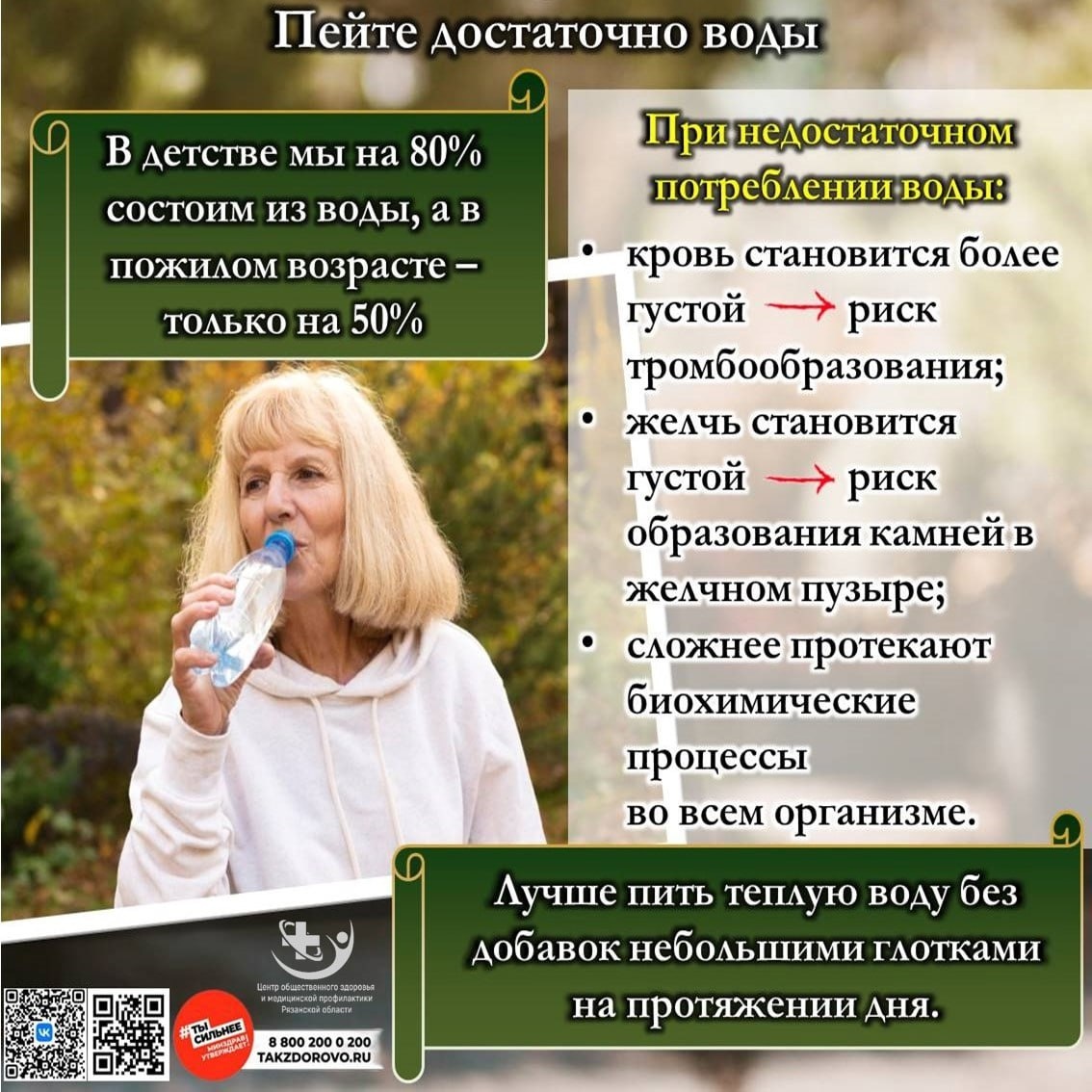 💧С возрастом чувство жажды часто притупляется, что может привести к обезвоживанию, а это, в свою очередь, чревато серьёзными последствиями