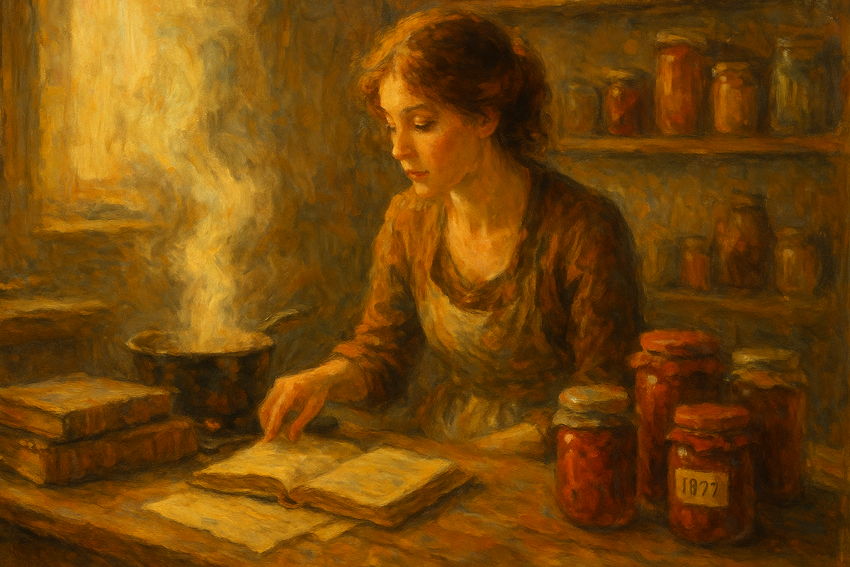 На верхней полке, за стопками старых газет и пустыми банками из-под огурцов, лежал блокнот. Тёмно-синий, в линейку, с обтрепанными краями и пятнами варенья — клубничного, судя по цвету. Он пах вялыми страницами, пылью и чем-то ещё — неуловимым, как сон из детства. Оля нашла его, разбирая бабушкин буфет после похорон. На обложке дрожащей рукой выведено: «Рецепты. Мария.» Мария. Ни мама, ни бабушка Оли так не звались. Кто же она? Блокнот оказался не просто сборником рецептов. Между «Груши, вареные с шафраном» и «Хлеб на кефире» прятались вставки, обрывки мыслей, признаний, почти писем. Некоторые строки были перечёркнуты, некоторые — выделены красной ручкой. «Никто не узнает, если я добавлю цедру вместо ванили. А вдруг он заметит?» «Саша опять не пришёл. Банка стоит на подоконнике. Жду, как дура.» Оля села на пол. За окном шумел вечерний дождь, и дом наполнился запахом прелых яблок и варёной груши. Впервые с утра ей стало тепло. «Ты не могла бы приехать? Я совсем одна здесь. И этот дождь.