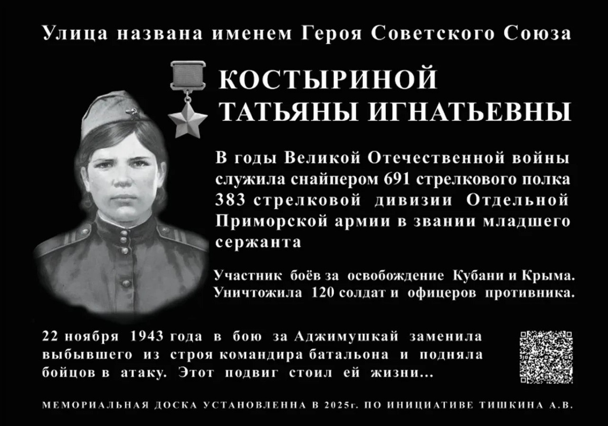 В Керчи установят две мемориальные доски В Керчи на 17 сессии городского совета приняли решение об установлении двух мемориальных досок. Первую установят для увековечивания памяти Героя Советского Союза Костыриной Татьяны Игнатьевны на фасаде нежилого здания по ул. Костыриной, 1, - передает КерчьФМ. Вторую, для увековечивания памяти погибшего военнослужащего, проявившего героизм в ходе специальной военной операции Ковернева Дмитрия Романовича. Её установят на фасаде МБОУ города Керчи Республики Крым «Школа № 23 им... подробнее Подписывайся на КерчьФМ.РФ @kerchfm