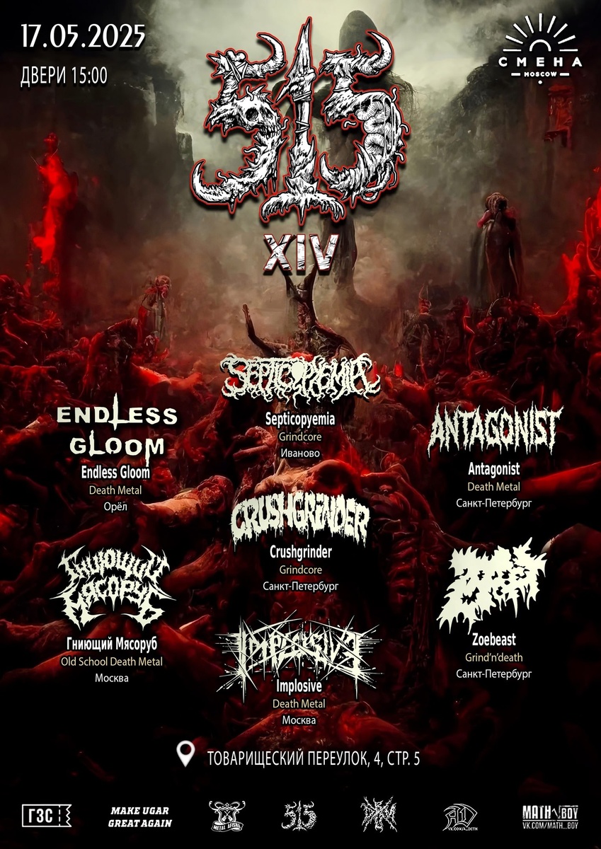 Мск 2025.05.17 Septicopyemia / Endless Gloom / Zoebeast / Antagonist / Гниющий мясоруб / Crushgrinder / Implosive † Смена 15:00 от 900р † vk.com/fest_515_xiv Ежегодный death/grind фестиваль 515, под №14. Скоро открывает свои двери! Билеты #202505s@intothemsk #grindcore #death_metal