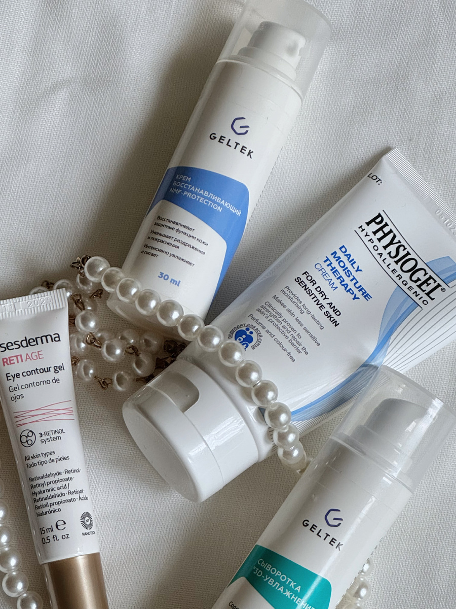 В этот раз я собрала для вас интересные продукты от Geltek, увлажняющий крем PHYSIOGEL и гель для глаз от SESDERMA! 🫧 Сыворотка для лица «3D увлажнение» от Geltek Эта сыворотка имеет легкую текстуру, превосходно проникает в глубокие слои кожи, эффективно увлажняя её, а также не оставляет дискомфортной липкости. Она способствует улучшению упругости кожи. 🫧 Интенсивно увлажняющий крем для лица и тела от PHYSIOGEL Я применяю этот густой увлажняющий крем в вечернем уходе ухода. Он прекрасно питает более сухие участки кожи, и за ночь обеспечивает отличное увлажнение и восстановление. 🫧 Восстанавливающий крем для лица NMF PROTECTION от Geltek Этот крем помогает восстановления кожи, устраняет негативные последствия использования активных ингредиентов. Он идеален для борьбы с сухостью и шелушениями, действуя быстро и эффективно. 🫧 Гель для кожи вокруг глаз RETI AGE от Sesderma Этот крем удивительно легок и приятен в нанесении. Он хорошо распределяется, дарит ощущение увлажненности, ум