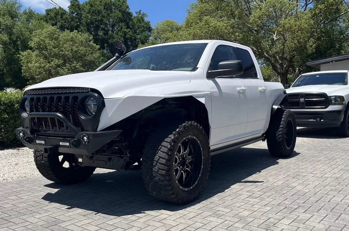 От обычного Wrangler JL удалось позаимствовать только фары и решётку радиатора: потребовалось подрезать передние крылья, щель между капотом и носовой частью заделать светодиодной лентой. Силовой бампер не доходит до колёс и может считаться разве что усилителем. Сзади всё тоже кустарно: в бортах вырезаны ниши под большие колёса, установлен небольшой бампер, а крышки платформы нет. Тем не менее без заднего свеса, длинного носа и на 37-дюймовых «зубастых» колёсах Ramgler выглядит очень брутально. С пятисантиметровым лифтом подвески и шноркелем пикап должен быть способнее на бездорожье. В салоне всё осталось от исходного RAM, информации о замене агрегатов тоже нет. Нетрадиционные пропорции и агрессивный дизайн не оставят равнодушным. Компания RAM считывает запрос покупателей на расширение модельного ряда. На подходе среднеразмерный грузовичок с несущим кузовом, также должна расшириться линейка тяжёлых пикапов: в гамму всё-таки вернут мотор V8. Также автопроизводитель намекал на возвращение