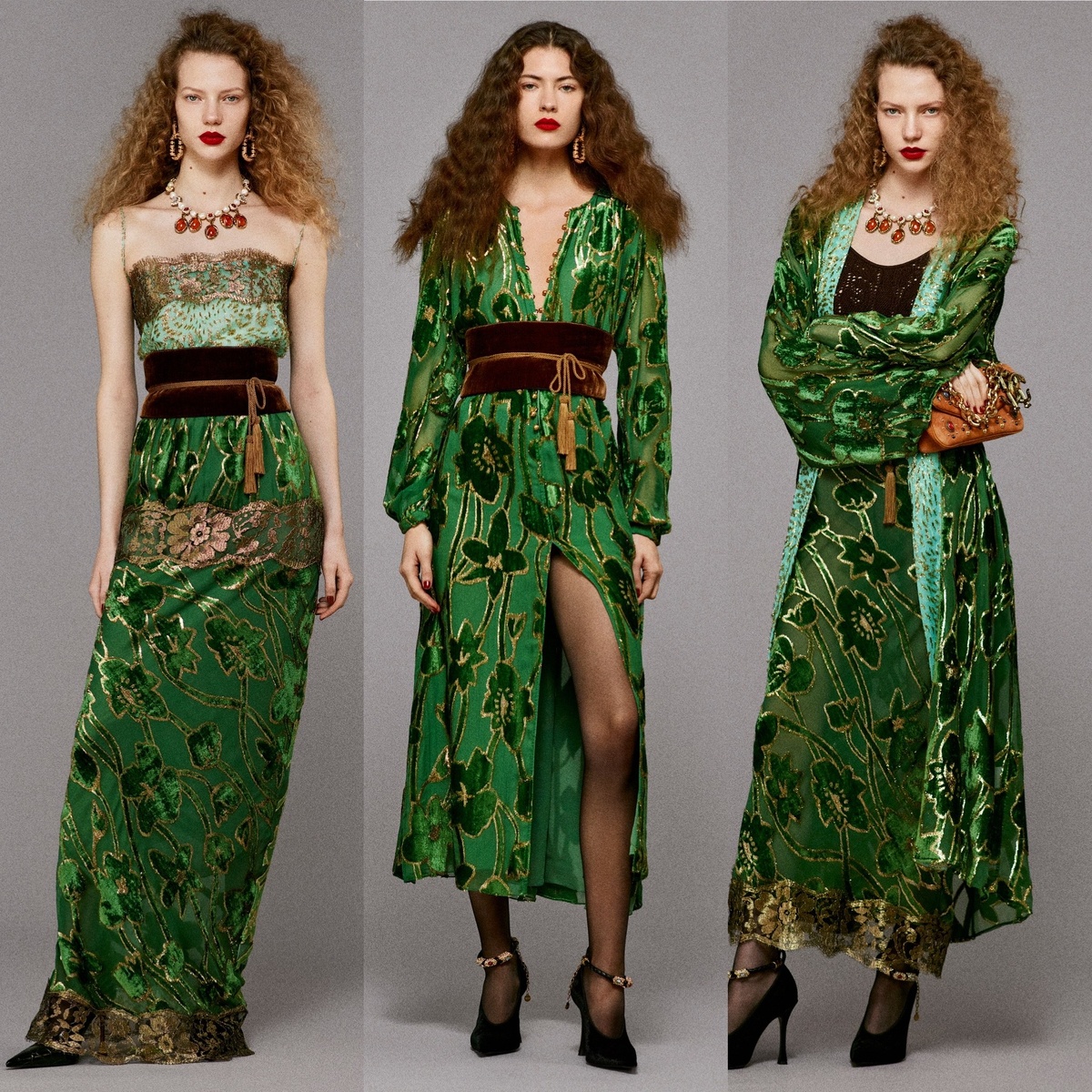Коллекция Roberto Cavalli Pre-Fall 2025 мастерски балансирует между эпохами, создавая причудливый калейдоскоп, где дневной шик встречается с ночным гламуром, а восточные мотивы перекликаются с западными традициями. Да, Пульизи, видимо, подустал от попыток удовлетворить европейскую адиторию своими дизайнами, решив обратиться к востоку. Восток - это очаровательно, правда, драконы на рубашках и бомберах переодически напоминают произведения с Алиэкспресс. Бохо-шик от Пульизи раскрывается во всей красе – свободные пальто и кимоно, словно легкие крылья, обнимают фигуру, а шелковые макси-платья струятся по телу, создавая гипнотический танец ткани. Эти наряды – как поэма о свободе и женственности, написанная на языке моды. Магия кожи и золота воплощает собой роскошь и демонстрирует истинное мастерство бренда. Здесь Пульизи молодец, его кружева из кожи и правда вызывают интерес. Кожа, словно по волшебству, обретает кружевной эффект, превращая простую футболку и юбку в изысканное творе