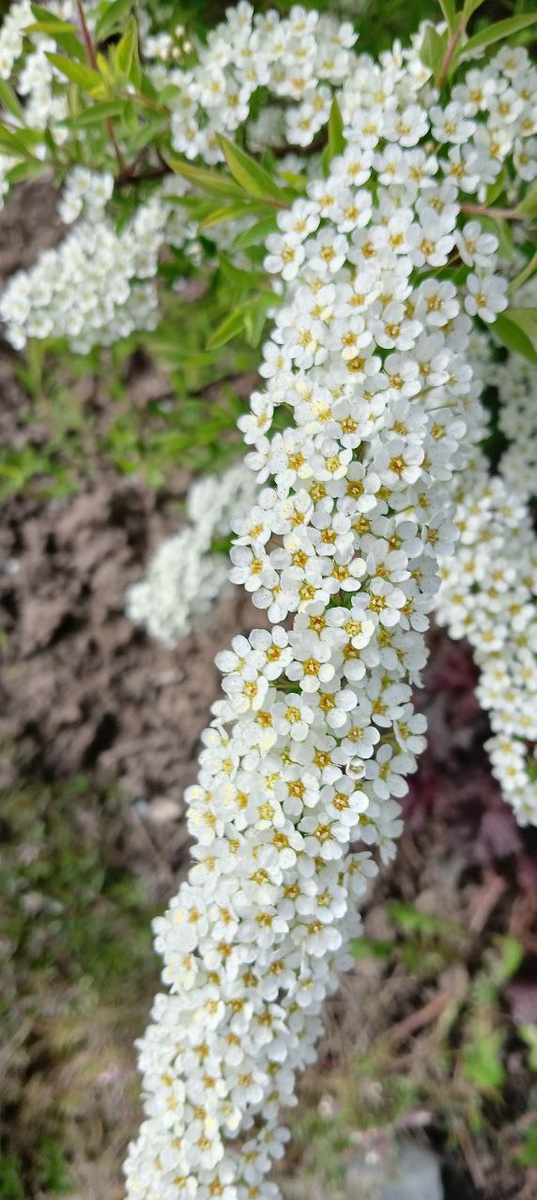 Добрый вечер! Погода оставляет желать лучшего... К холодному ветру периодически подключается дождь. Вышла на улицу немного поделать дела, нужно подготовить грядки для лука, моркови и свеклы. В рабочие дни времени совсем не хватает, поэтому подготовлю заранее, чтобы вечером после работы заняться посадками в готовые грядки. Утром было облачно, но солнышко выглядывало из густых облаков и грело своими лучами. Спирея серая стоит нарядная как невеста. КРАСАВИЦА! Не смогла пройти мимо чтобы не заснять ее красоту))
