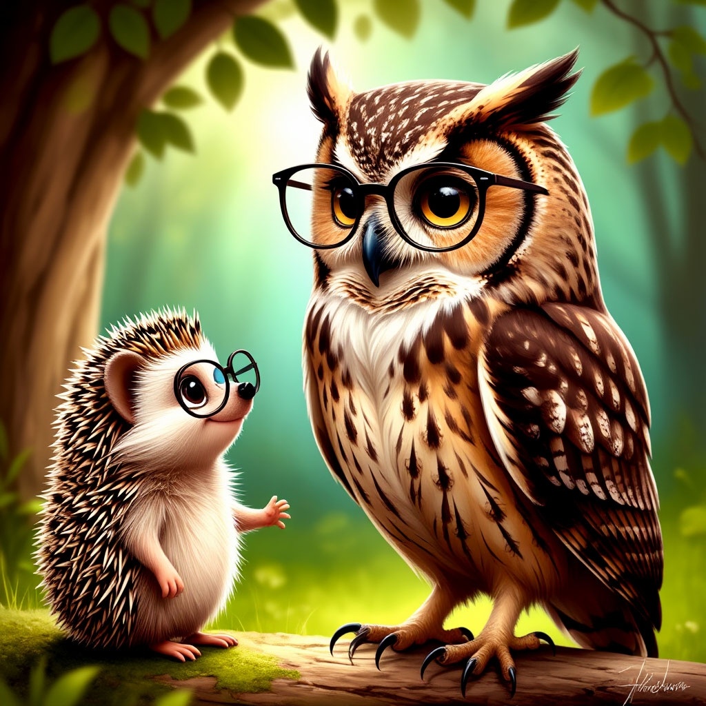 **Глава 1: Тайна Ночного Неба** В лесу Сверкающих Троп жил ежонок по имени Искорка. Каждую ночь он считал звёзды, которые танцевали над его домиком из плетеных веток. Но однажды небо потемнело: звёзды начали исчезать, будто кто-то их украл! «Без них лес погрузится в вечную тьму», — прошептал Искорка и побежал к старой сове Стелле, чьи перья сияли, как млечный путь. **Глава 2: Совет совы** «Звёзды не гаснут просто так, — сказала Стелла, указывая крылом на север. — Их энергию питает Кристалл Созвездий в пещере Ледяного Ветра. Но туда ведёт опасная тропа…» Искорка не испугался. Взяв теплый шарф из паутинок и флягу с росой, он отправился в путь. **Глава 3: Лисёнок-проводник** На краю леса Искорка встретил рыжего лисёнка Лютика, который грыз ледяную клюкву. «Ты ищешь Кристалл? — спросил лисёнок. — Я видел, как туда летели чёрные тени! Давай вместе, а то ты такой… колючий, но маленький». Хоть Искорка и надулся, он согласился — вдвоём безопаснее. **Глава 4: Пропасть и Ледяно