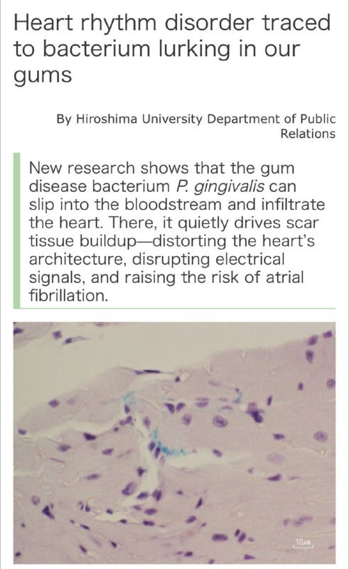 Учёные обнаружили, что бактерия, которая обитает на деснах, способна вызвать аритмию и даже инфаркт. Да, это не шутка! ⚠️