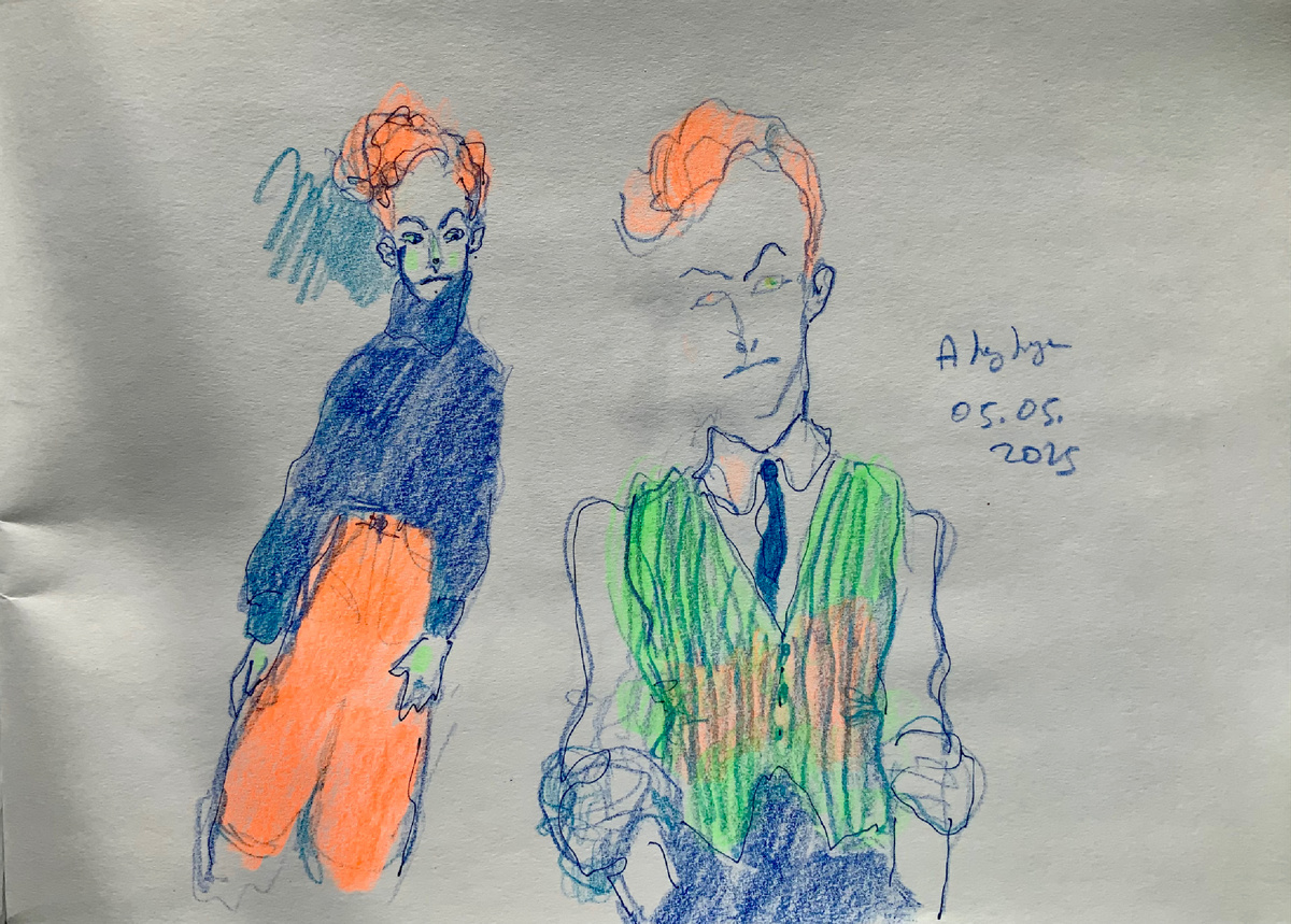 Вот. Не все из них так уж похожи на Дэвида (парнишка в оранжевых брюках не очень похож, но будем считать, что это маленький Дэвид) :-)) Но я все время стараюсь. * Интересная у человека фактура. Но иногда бывает проблемно его рисовать. В том числе потому, что вместо Боуи у меня частенько получается Моррисси. Как, например, здесь, где Моррисси выходит из Боуи словно джинн из волшебной лампы. Они довольно разные и внешне, и внутренне. Но и общие черты есть. К тому же, Моррисси является поклонником Боуи и вообще глэм-рока. Поэтому то, что из Боуи у меня часто выходит Моррисси, может быть, даже не так странно. Тем более, что однажды Боуи и Моррисси даже спели песню Т-Рекс «Космический танцор»: Вот они :-)) Не большой фанат я вкрадчивых песен под акустику, но да ладно. Народ слышно, что радуется :-))) *** Вот оригинал в исполнении группы Т-Рекс: *** Вот Марк Болан (вокалист группы): Болана я тоже однажды рисовала. Но быстро, опять же, не найду рисунок. Может быть, лучше нарисовать новый :-))