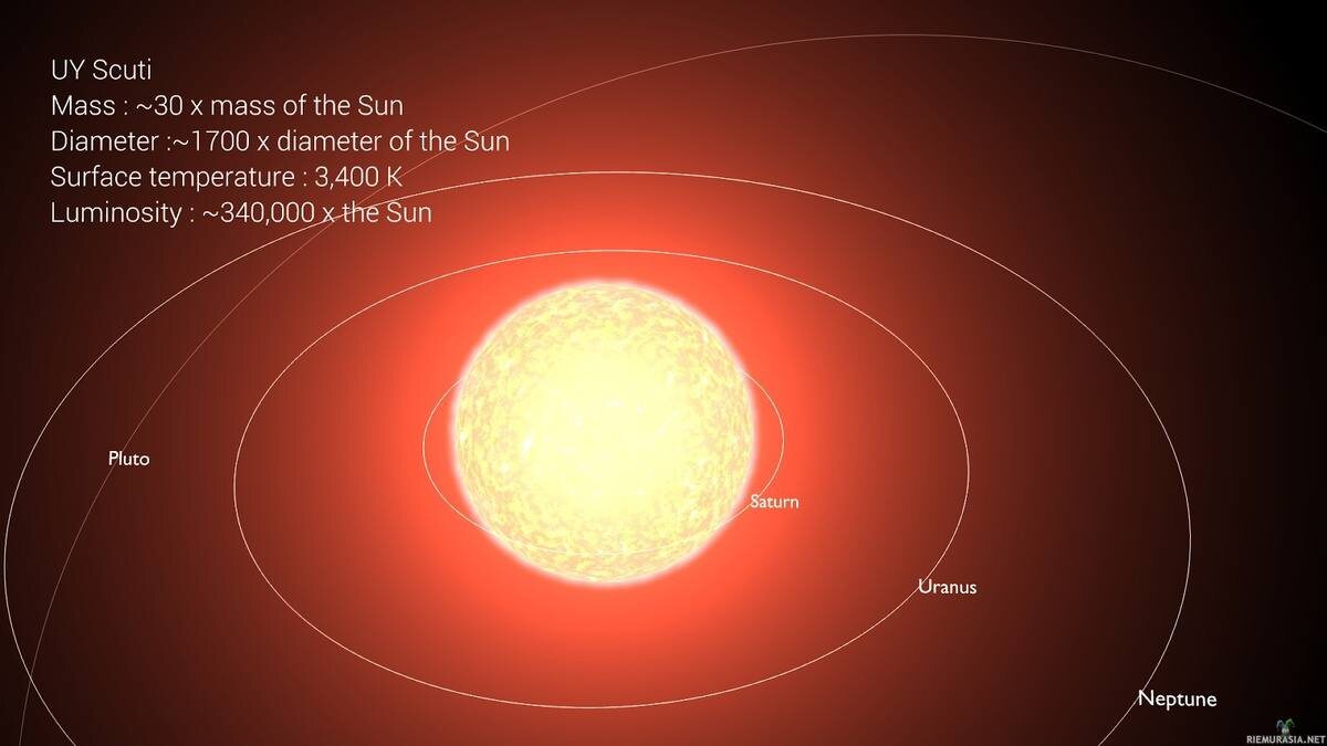 Сравнение размеров «Красного сверхгиганта» с нашей солнечной системой на примере звезды — UY Щита