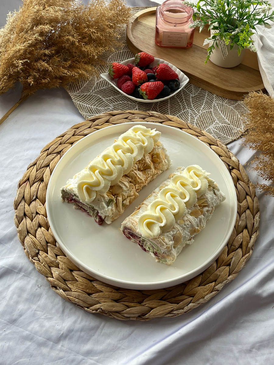 Как избежать: Равномерно распределяйте начинку по поверхности меренги, оставляя небольшие отступы по краям, чтобы начинка не вытекала при сворачивании.