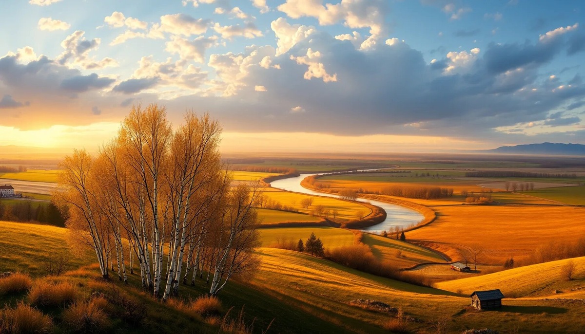 В полях бескрайних, в золоте лугов.