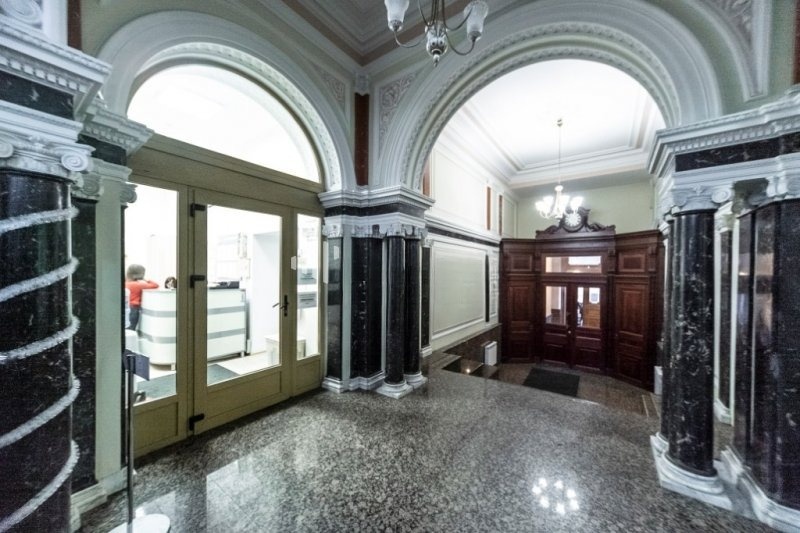 За весьма обычным фасадом — настоящий модерновый рай: кованые лестницы, витражи в нежных тонах, мозаичный пол с затейливым орнаментом. Дом был построен в начале ХХ века, в золотую эру петербургского модерна — и дух той эпохи здесь буквально висит в воздухе.
