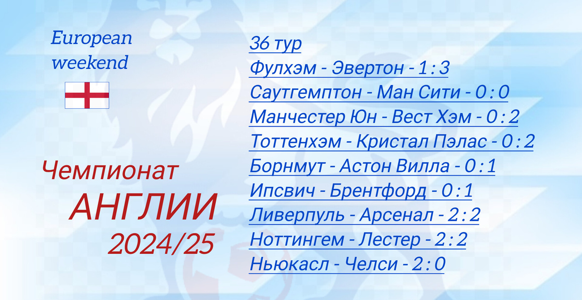 Тут заканчивался на "Энфилде" матчем двух лидеров, которые победителя выявить не смогли. В середине первого тайма Коди Гакпо после навеса Эндрю Робертсона счёт открыл. А ещё через минуту в ворота "канониров" влетел и второй мяч - это Луис Диас замкнул прострел Доминика Собослаи. Гости смогли отойти от такого нокдауна только после перерыва. Сначала бразилец Мартинелли выиграл позицию у здоровенного Ван Дейка и легким кивком головы отправил мяч в цель. А затем Микель Мерино счет сравнял. Алиссон справился с опаснейшим ударом Эдегора, отразив мяч в штангу. Однако первым на добивание оказался именно испанец. Кстати, в концовке матча Мерино заработал второе предупреждение и лишил свою команду возможности побороться за победу.
