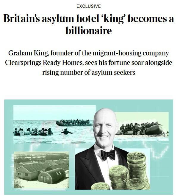 Британский предприниматель, который зарабатывает на размещении мигрантов, стал миллиардером, пишет газета Sunday Times. По ее данным, «король» отелей для нелегалов Грэм Кинг за прошлый год увеличил свое состояние на 35% за счет очередной волны миграции и переоценки стоимости размещения искателей убежища. Так, проживание одного мигранта в отелях Грэма Кинга обходится правительству в £145 (почти ₽16 тысяч) за ночь. При этом всего в его гостиницах проживают 38 тысяч мигрантов, что позволяет им генерировать £5,5 миллионов (больше ₽600 миллионов) выручки ежедневно.